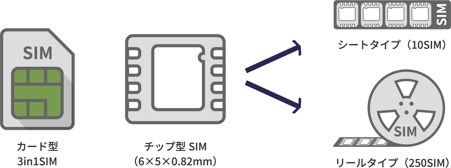 「MEEQグローバルSIM」はカード型3in1SIM(標準、micro、nanoサイズSIMとして利用可能)の他に、ハードウェアに組み込めるチップ型SIMを用意しています。これまで250枚で1セットのリールタイプを提供していましたが、少数での開発やテストなどにご利用いただけるように10枚で1セットのシートタイプの提供を開始しました。