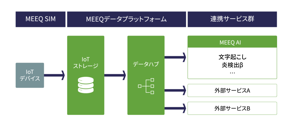 IoT事業者および企業向けにNoCode IoT/DX Platform『MEEQ(ミーク)』を提供しているソニーネットワークコミュニケーションズスマートプラットフォーム株式会社(本社:東京都渋谷区、代表取締役 執行役員社長:峯村竜太 以下、当社)は、IoTデバイス等から送信されたデータをAIが処理する「MEEQ AI」における第2弾サービス※1「MEEQ AI 文字起こし」の提供を開始しました。「MEEQ AI 文字起こし」を利用することで、MEEQ SIMを通じてIoTストレージにアップロードした音声データを、テキスト化されたデータとして取得できます。