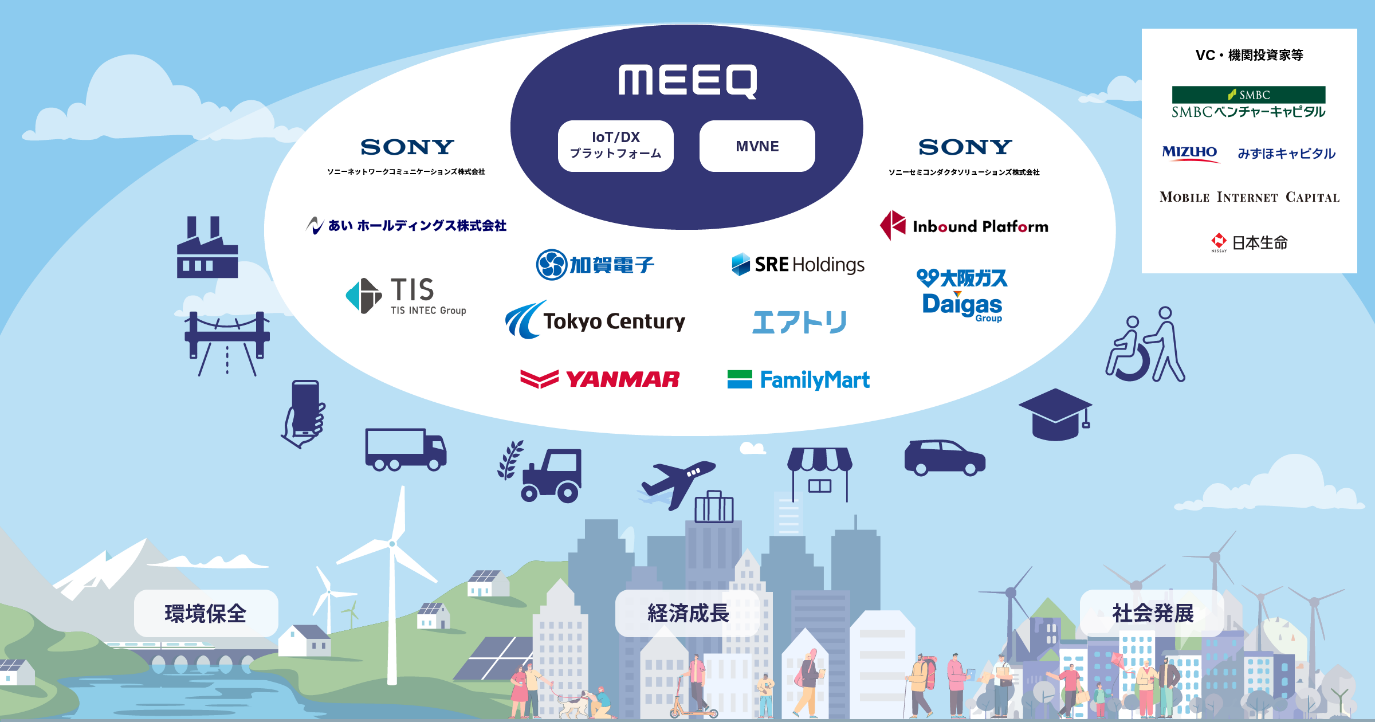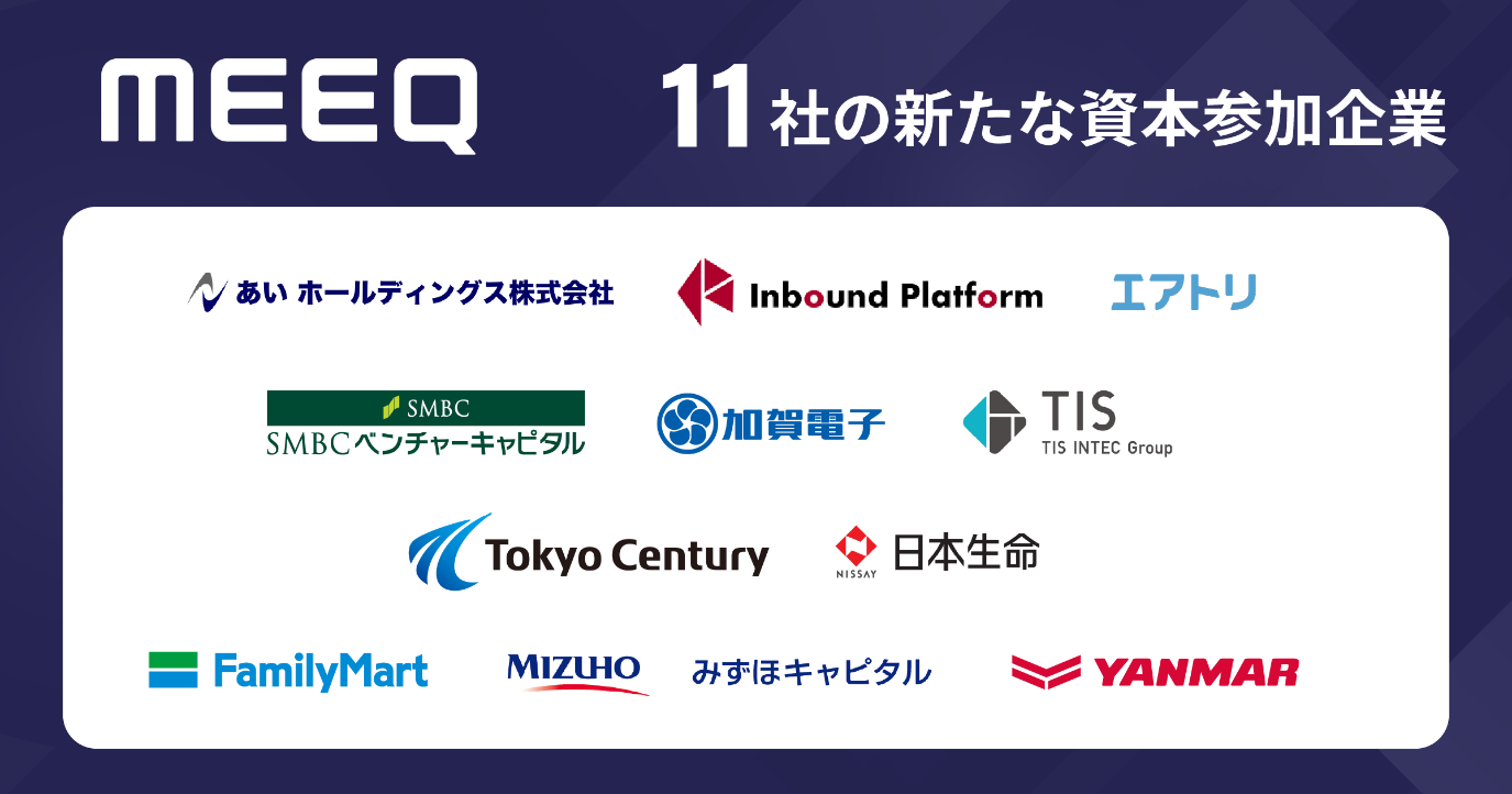 ミーク株式会社(本社:東京都渋谷区、代表取締役 執行役員社長:峯村竜太 以下、ミーク)は、あい ホールディングス株式会社、株式会社インバウンドプラットフォーム、株式会社エアトリ、加賀電子株式会社、TIS株式会社、東京センチュリー株式会社、株式会社ファミリーマート、ヤンマーベンチャーズ株式会社と資本・業務提携を実施するとともに、SMBCベンチャーキャピタル株式会社、日本生命保険相互会社、みずほキャピタル株式会社による資本参加を受け入れることで、各産業領域におけるIoT・DXによるイノベーション推進に関する取組みを本格展開します。