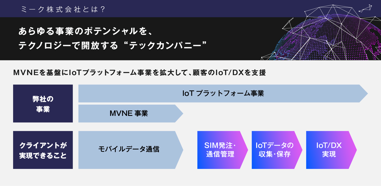 テクノロジーで事業のポテンシャルを解放することを使命とし、世界を変えるイノベーションを支えるテクノロジーカンパニーを目指して設立したミーク。